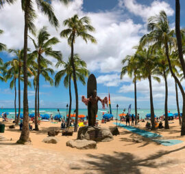Hawái, un estado de los EE.UU., es un archipiélago volcánico aislado en el Pacífico central. Sus islas son famosas por sus paisajes escabrosos de riscos, cascadas, follaje tropical y playas con arenas doradas, rojas, negras e incluso verdes. De las 6 islas principales, Oahu tiene la capital y la ciudad más grande de Hawái, Honolulu, donde se encuentra la playa de media luna Waikiki y los memoriales de la Segunda Guerra Mundial en Pearl Harbor.